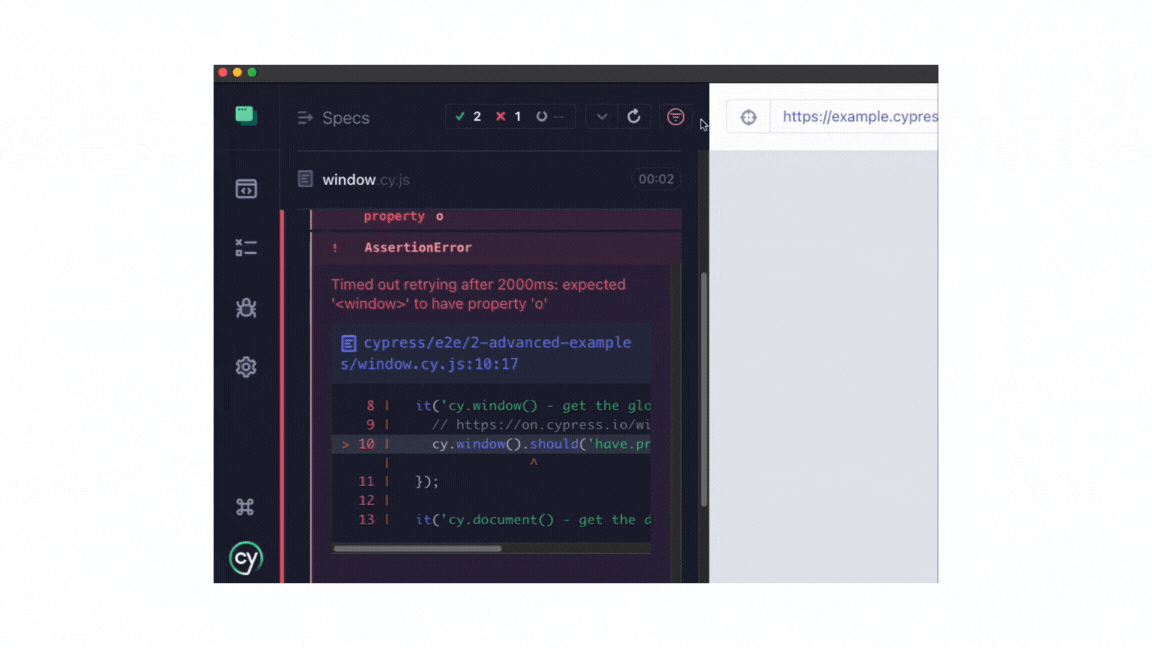 Recently Dennis Bergevin wrote a cool plugin cypress-plugin-last-failed with both CLI and Cypress UI pieces to run just the previously failed tests locally. Here is the plugin’s own demo GIF showing re-running the failed tests by clicking a button: