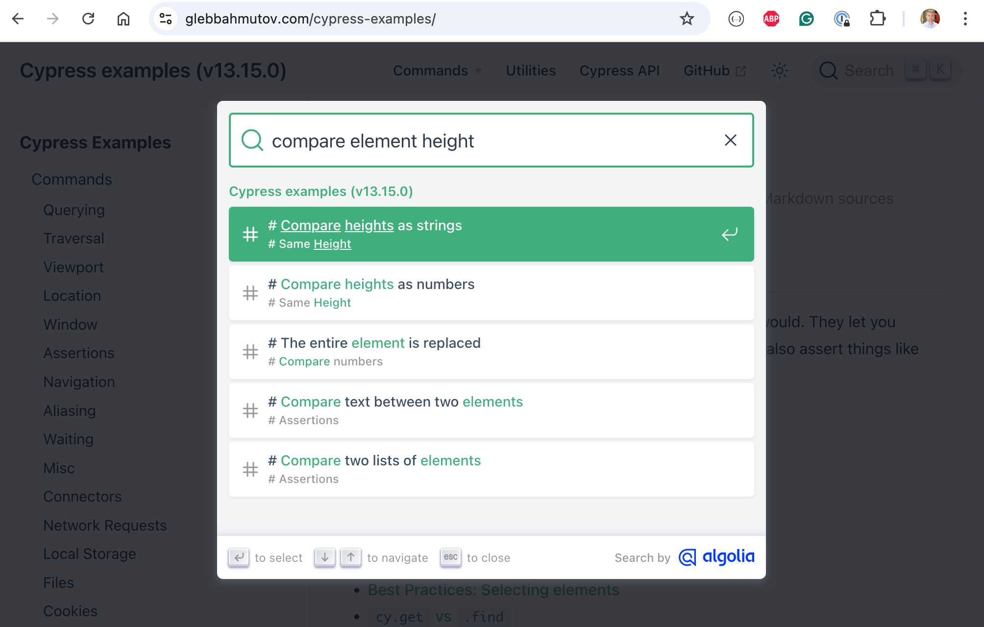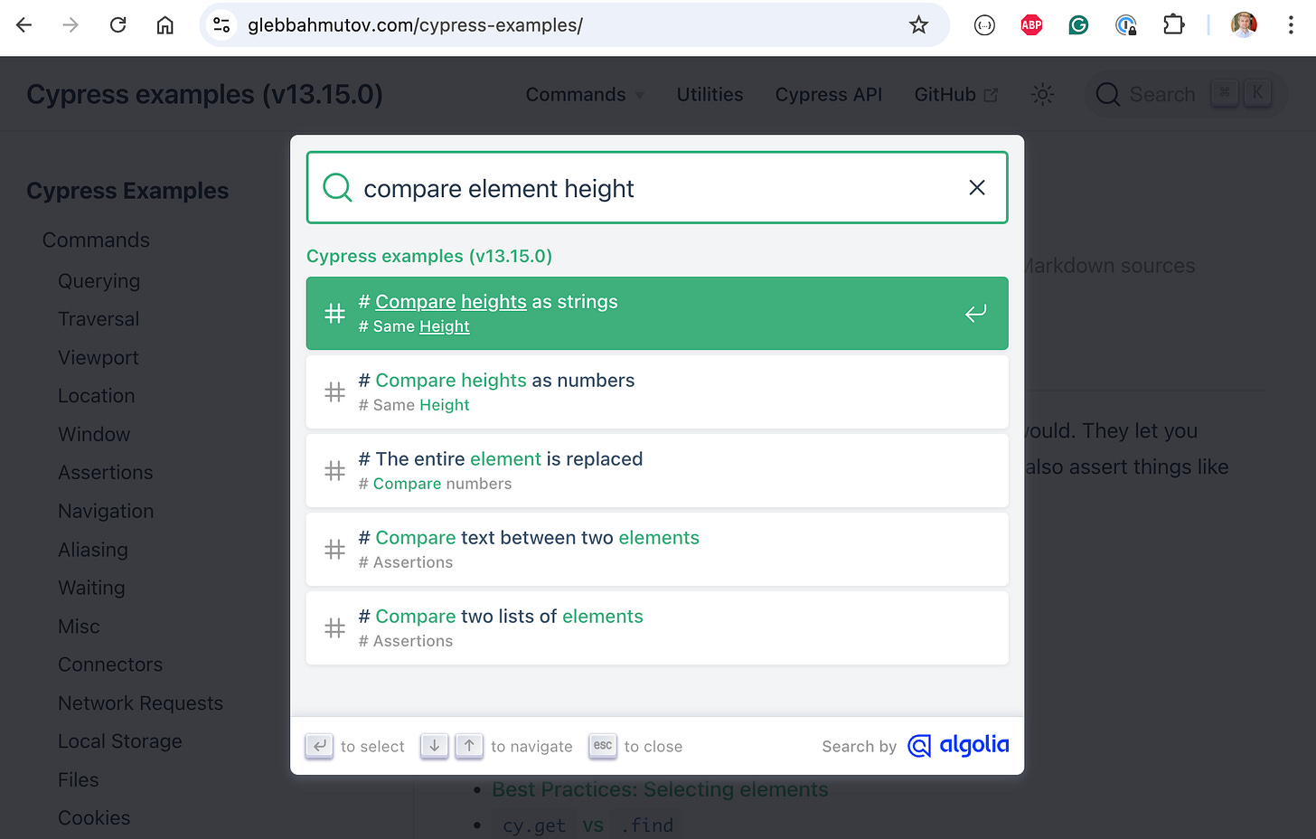 Tip: the above videos explain the recipes available on my https://glebbahmutov.com/cypress-examples/ site. You can find relevant tested Cypress command examples by searching it directly or by using https://cypress.tips/search