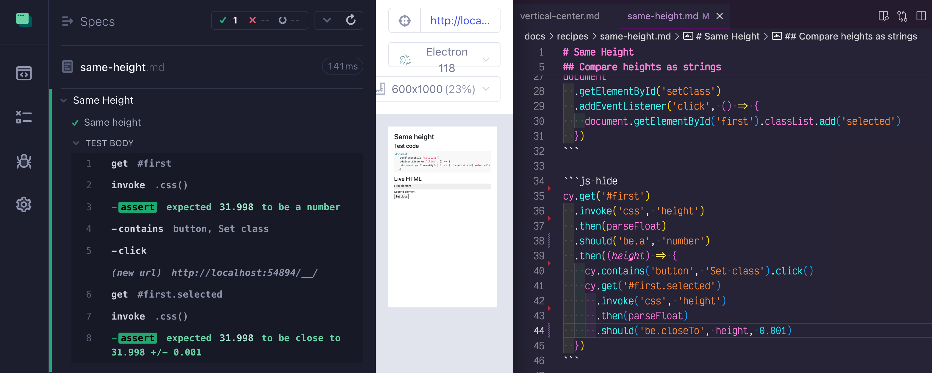 localStorage.getItemandlocalStorage.setItemmethods during your tests. Here is a short example; we can set the initial value immediately, and then change it after a part of the test finishes
