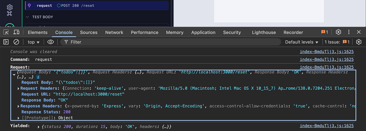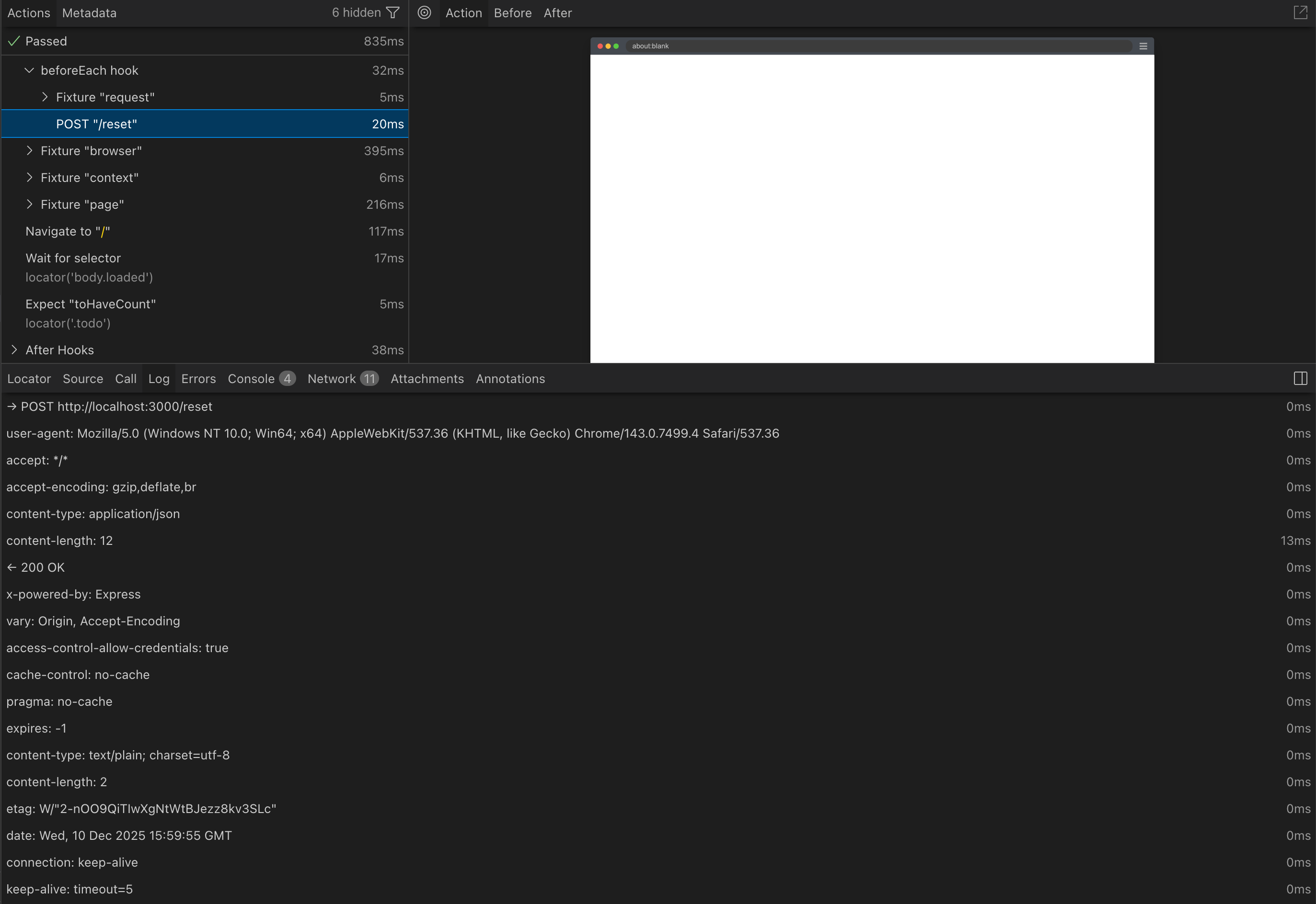 cy.request(’POST’, ‘/reset’, { todos: [] })