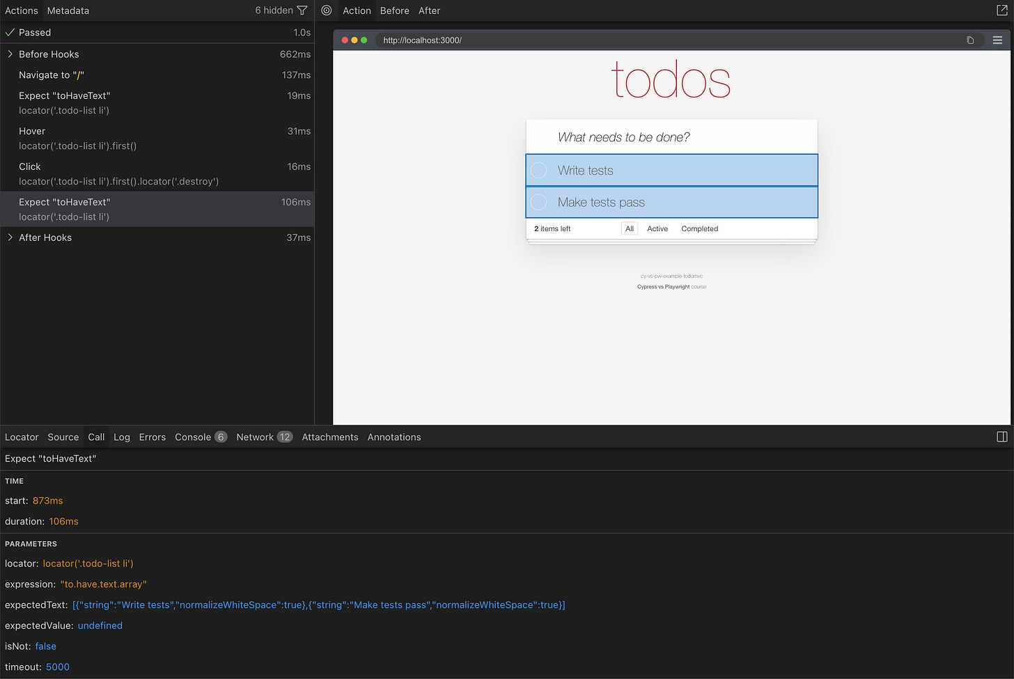 await expect(items).toHaveText([’Write tests’, ‘Make tests pass’])