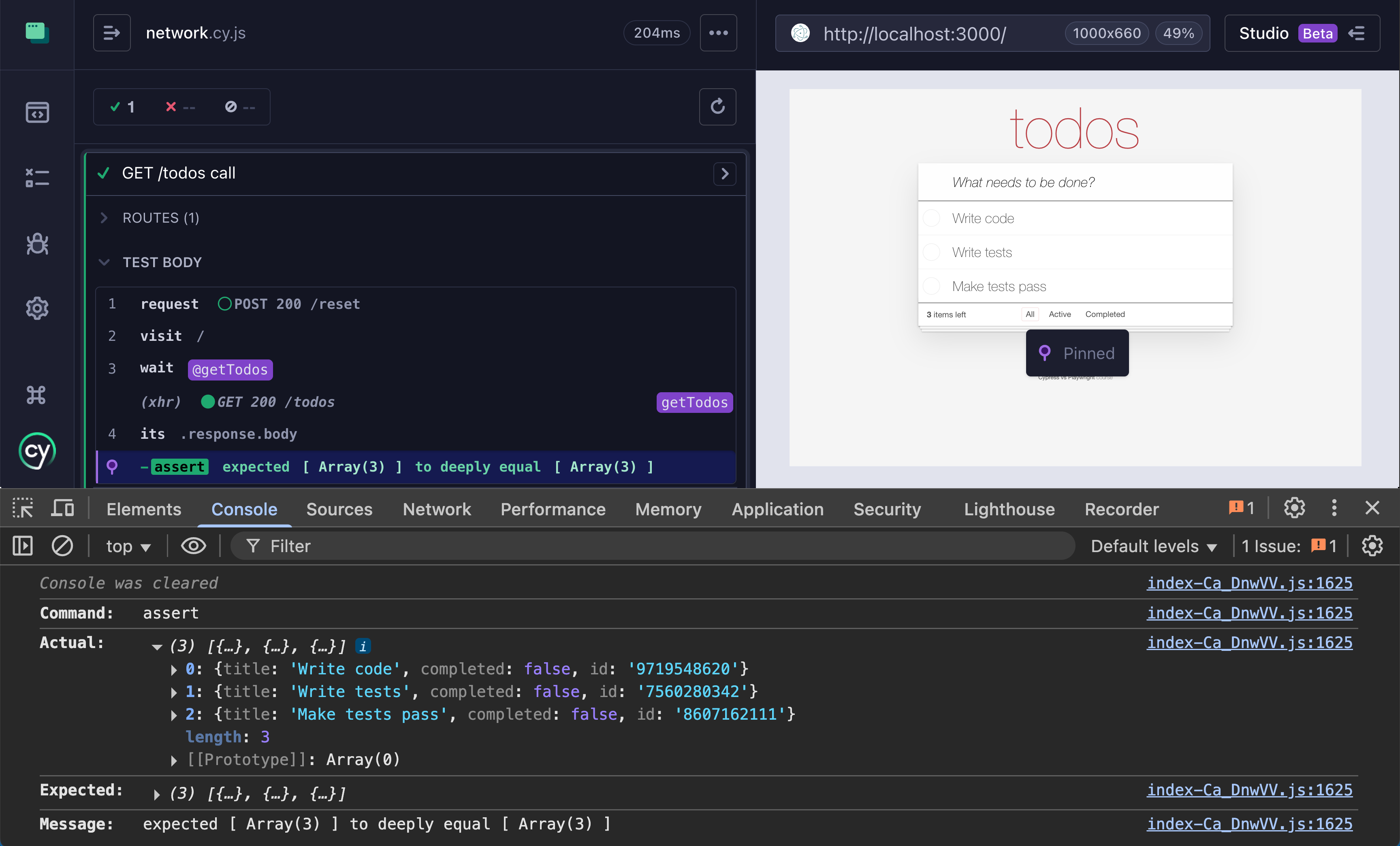 Yesterday we waited for GET /todos network call. Let’s confirm the data sent by the server by inspecting the response body.