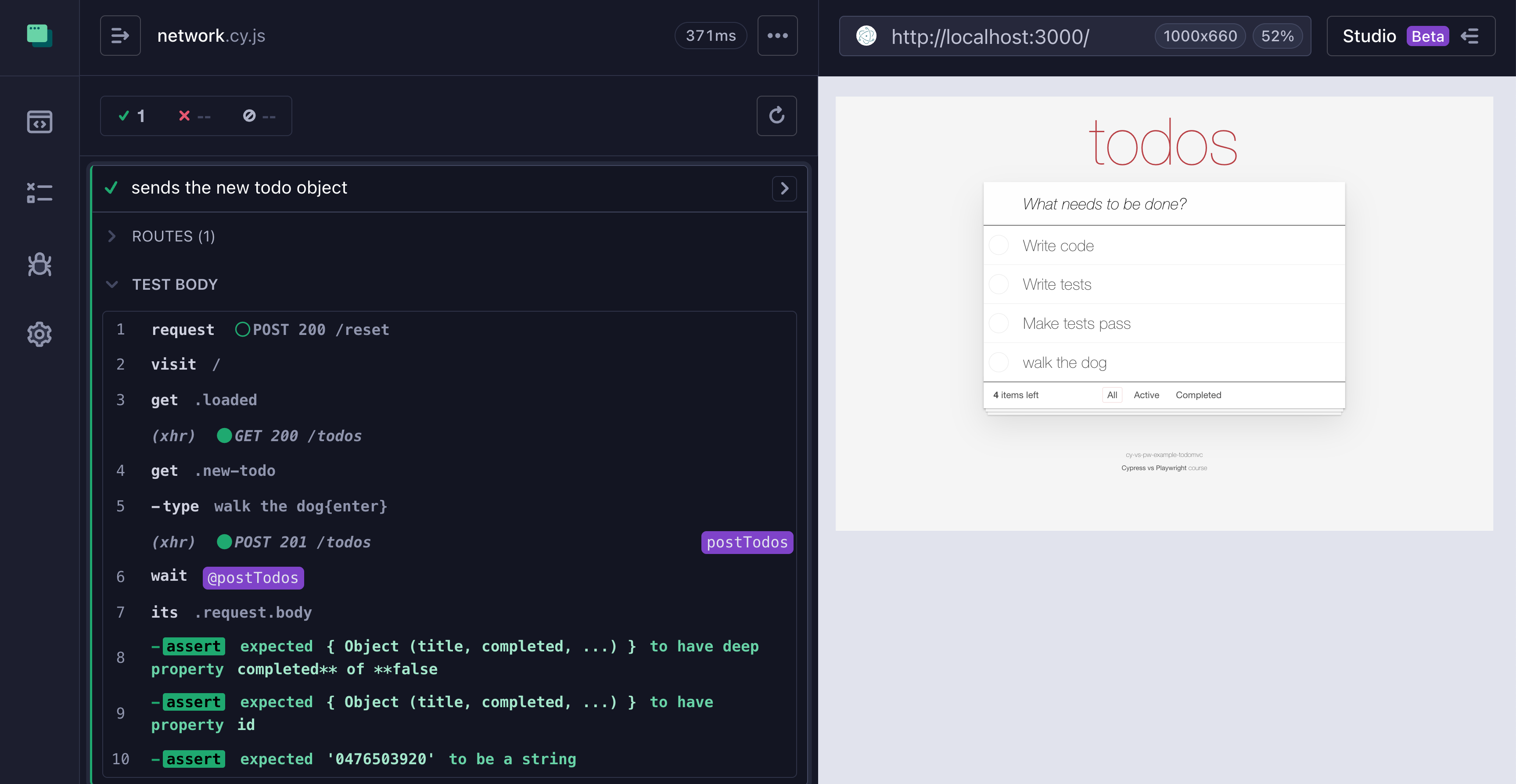 When the user enters a new “todo” item, the web app sends it via POST /todos network call. Let’s confirm the known properties of the sent object: