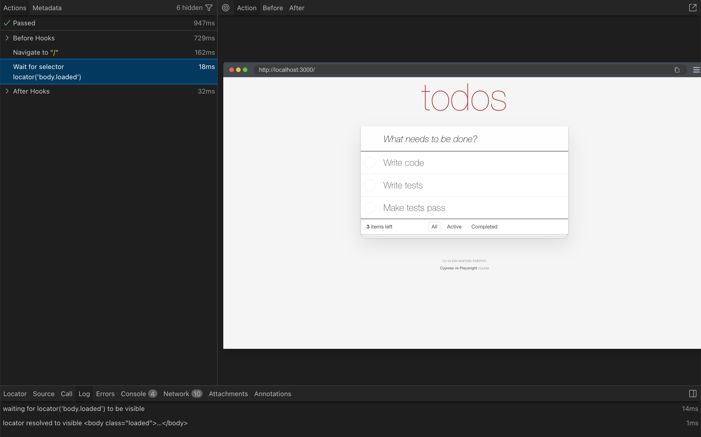 cy.get(’body.loaded’).should(’be.visible’)This is how Playwright looks when the command waitFor passes